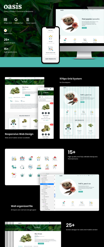图穷联素材库 » 绿色产品电商网站设计Sketch模板 Marijuana e