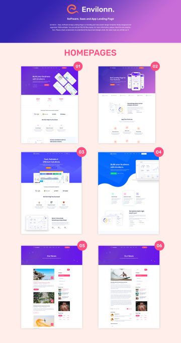 Envilonn - Saas,软件和应用程序登陆页面是一个趋势和新的时尚设计模板。设计精美,井井有条。100%可编辑。您可以轻松编辑所有PSD / XD文件。有关更多信息,请查看文档。请检查屏幕截图以了解布局和设计风格。我们真的希望你会喜欢我们的产品。