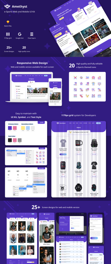 图穷联素材库 » 紫色风格电子竞技网站Web UI模板素材 Amethyst
