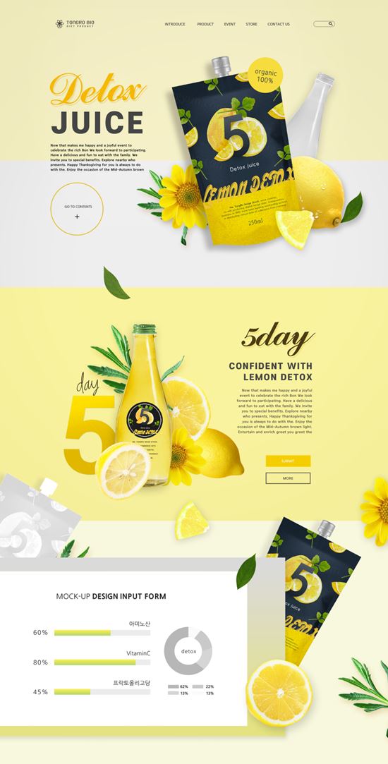 图穷联素材库 » 黄色清新柠檬水饮料促销网页设计模板