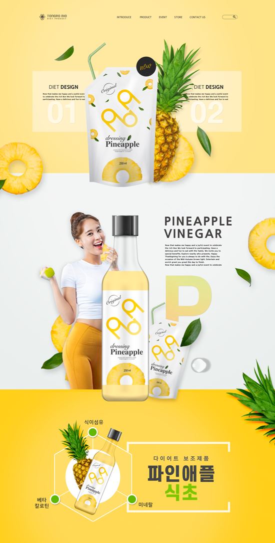 图穷联素材库 » 黄色菠萝维生素饮食促销网页设计模板