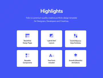 Folio是适用于设计师,开发人员,代理商和所有创意的创意作品集设计模板。它为您带来21个精美的投资组合模板,旨在快速启动您的项目展示并在您自己的网站上工作。所有模板均以简洁现代的方式构建,可让您轻松进行编辑和自定义。