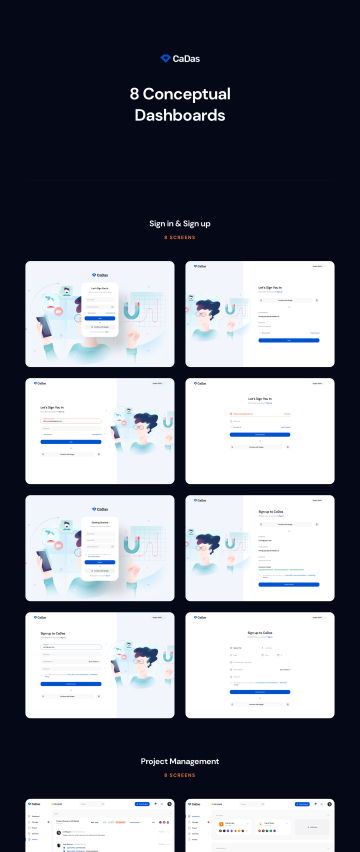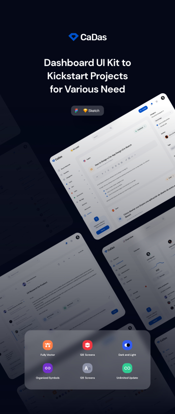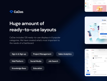 CaDash是专门为仪表板设计的时尚界面。它包括128个精心制作的bscreen,可用于2个明暗版本,您可以将其用于下一个Dashboard项目,以使其更明亮并更吸引潜在用户。