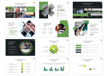 图穷联素材库 » 清新时尚优雅绿色配色的powerpoint幻灯片演示模板