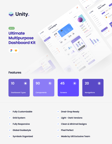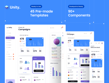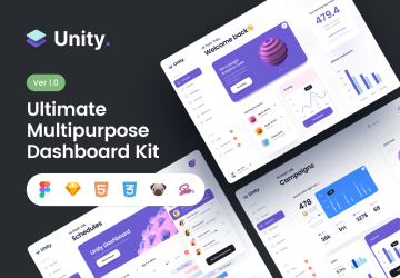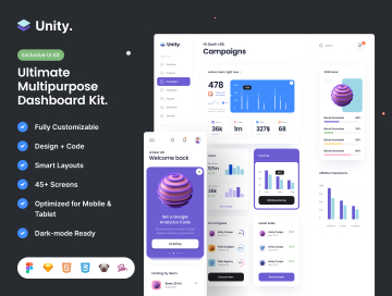 Unity是一个干净,最少的生产就绪仪表板UI套件,适用于亮或暗模式下台式机和移动应用程序的各种用例