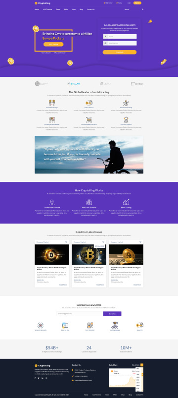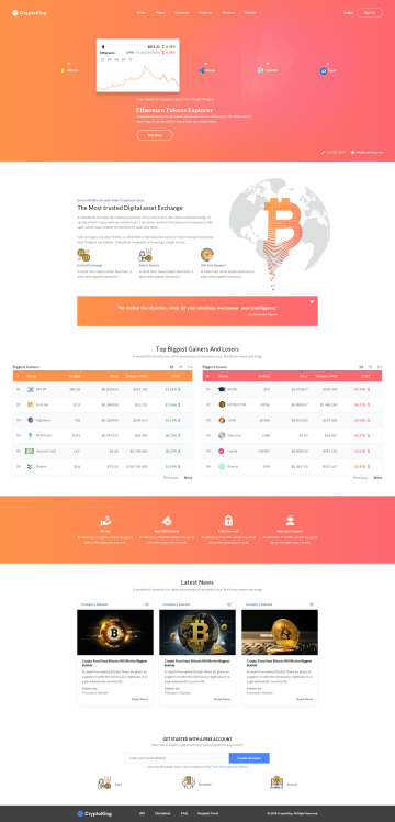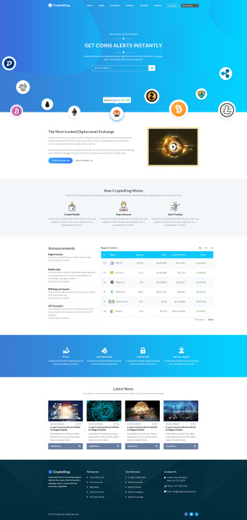 高品质的时尚比特币加密货币PSD网站设计模板,是一个现代,干净,多用途和特色设计PSD模板。专门为加密货币兑换商,列表加密货币,Lisintg水龙头和相关的加密货币服务而设计。它包含28个精心组织和矢量图层的PSD文件。