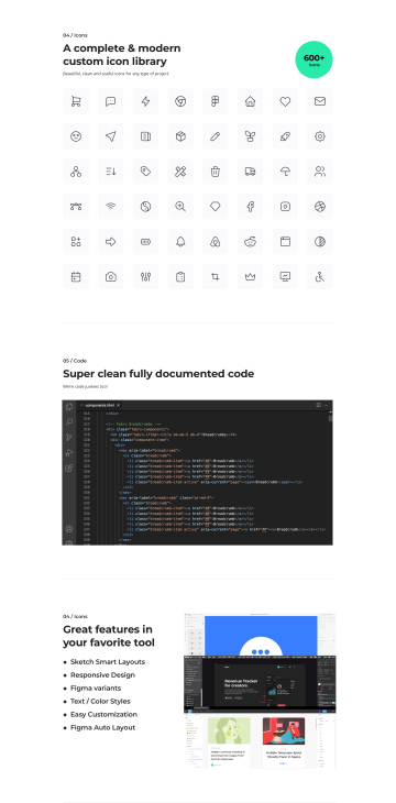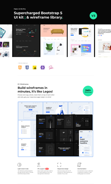一个令人惊叹的库,包含 250 多个线框、500 多个组件和现成的模板。完全用 HTML / CSS 编码,使用 Bootstrap 5 框架构建。复制片段,将它们粘贴到您最喜欢的编辑器中,并在几分钟内准备好您的响应式 HTML 页面!