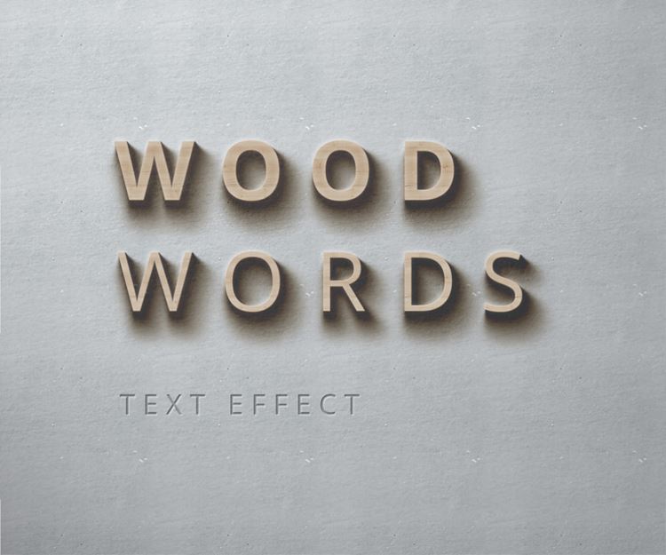 图穷联素材库 » 立体效果文字特效Psd Wood Words Text Effect