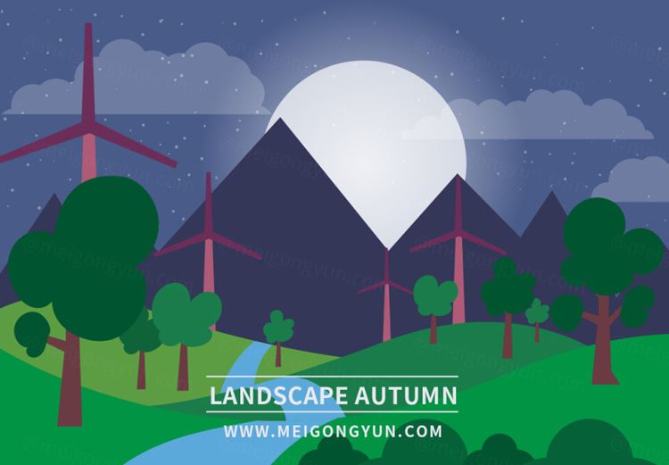 绿色能源夜景矢量图Green Energy