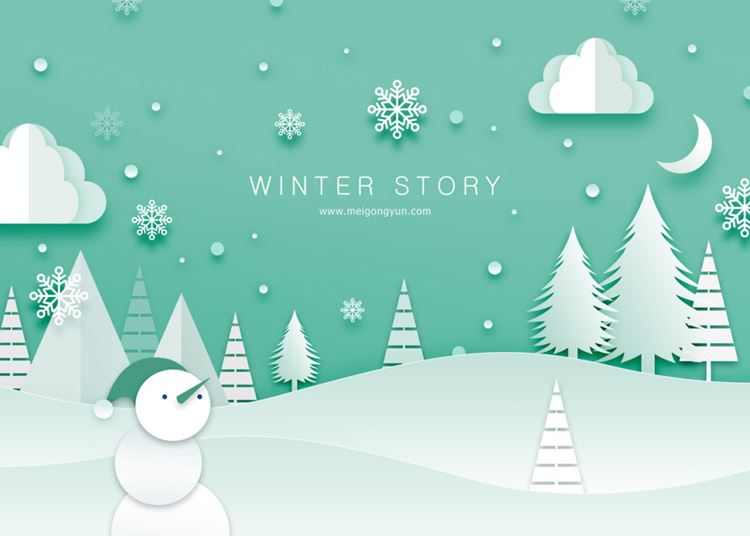冬季剪纸贴画风格PSD海报Paper-Cut in winter