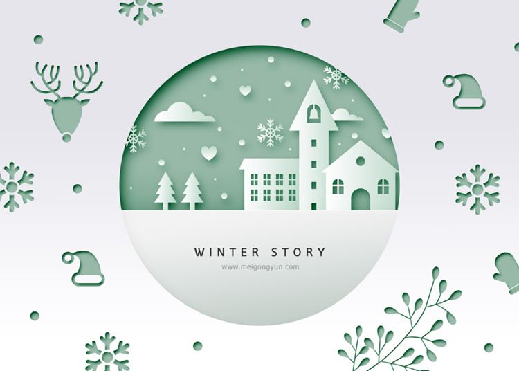 图穷联素材库 » 冬季剪纸贴画风格PSD海报Paper-Cut in winter