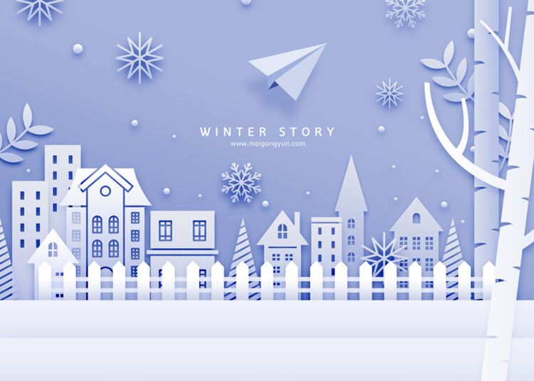 图穷联素材库 » 冬季剪纸贴画风格PSD海报Paper-Cut in winter