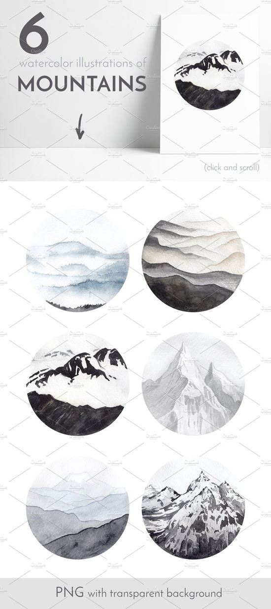 图穷联素材库 » 6组高山水彩插画高清素材 Watercolor illustrations of MOUNTAINS