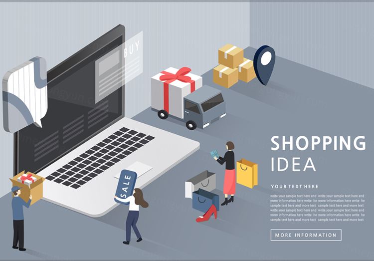 图穷联素材库 » Shopping Idea 移动电子商务理念研究分析AI矢量插图素材 ti209a8204