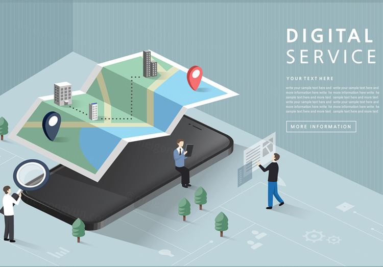 Digital Service 数字服务商业移动导航搜索AI矢量插图素材 ti209a8206
