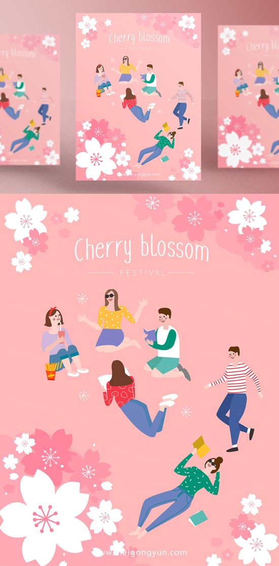 Cherry blossom 樱花节散漫的几个人AI矢量插画素材 ti238a11201