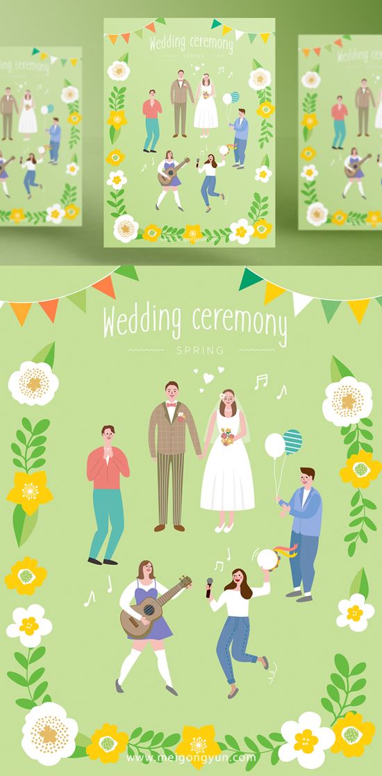 Wedding Ceremony 幸福婚礼仪式快乐的人们AI矢量插画素材 ti238a11202