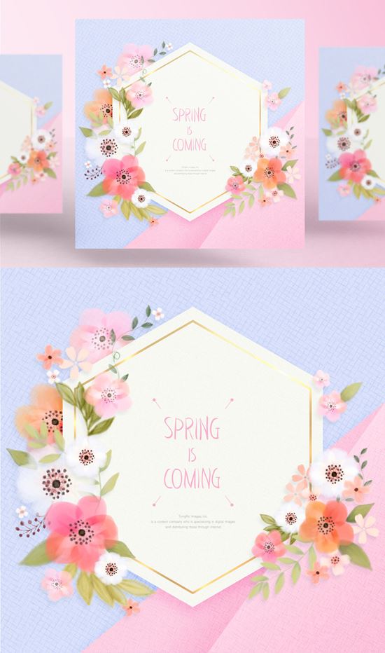 Spring is coming 美丽的春季六边形金色花卉花环花边PSD分层素材 ti156a7701