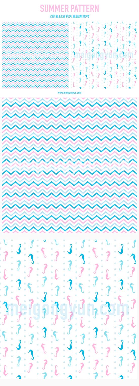 2枚清凉夏日【曲线海马】无缝拼接AI矢量图案素材 cm18007577 cm18007578