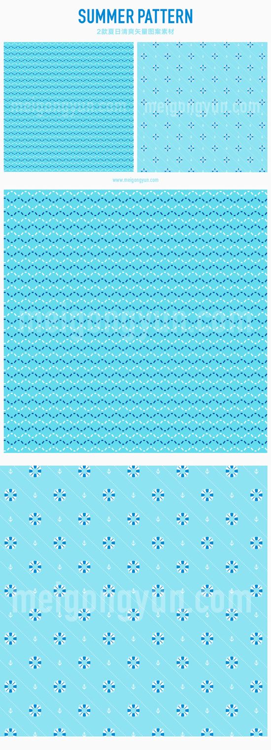 2枚清凉夏日【几何图案游泳圈】无缝拼接AI矢量图案素材 cm18007581