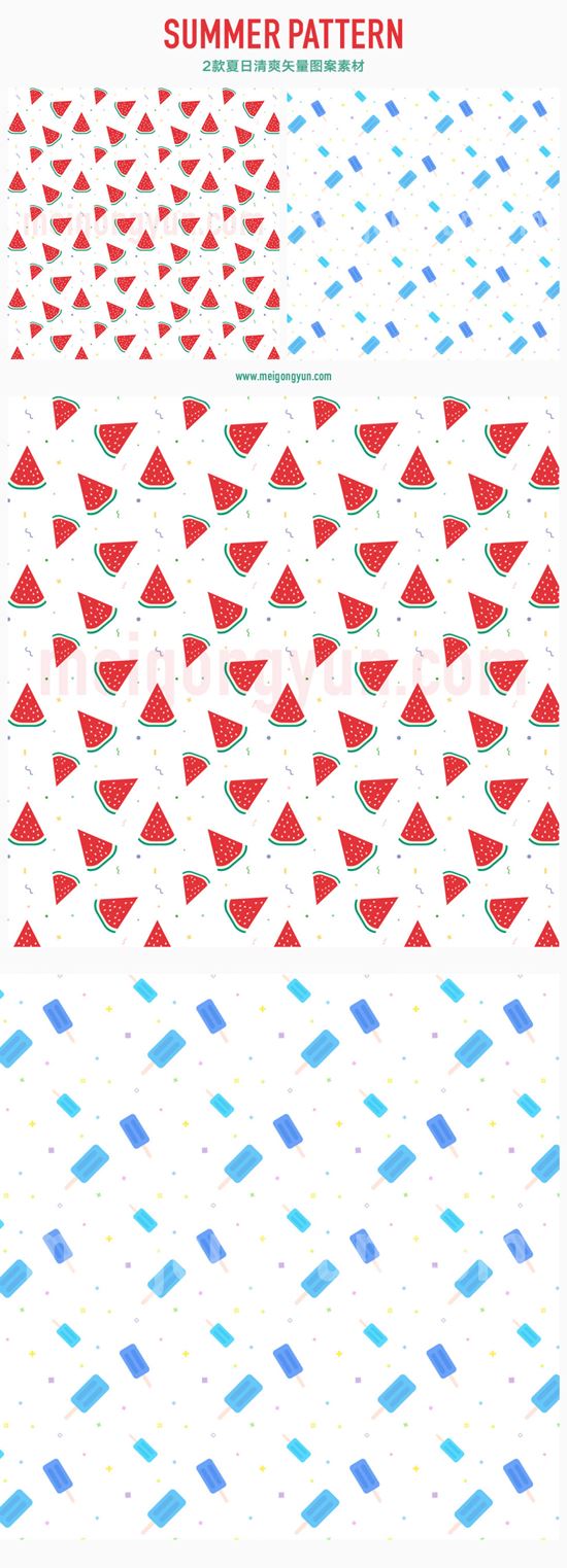 2枚清凉夏日【雪糕西瓜】无缝拼接AI矢量图案素材 cm18007583 cm18007584