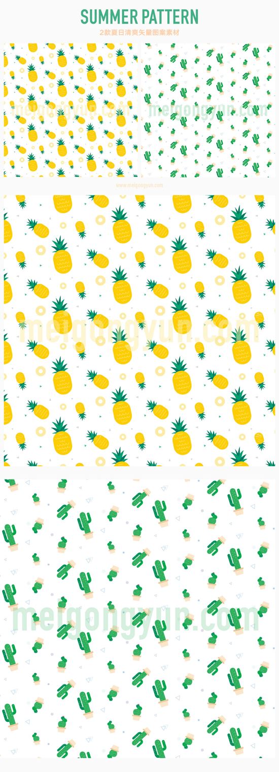 2枚清凉夏日【菠萝仙人掌】无缝拼接AI矢量图案素材 cm18007585 cm18007586