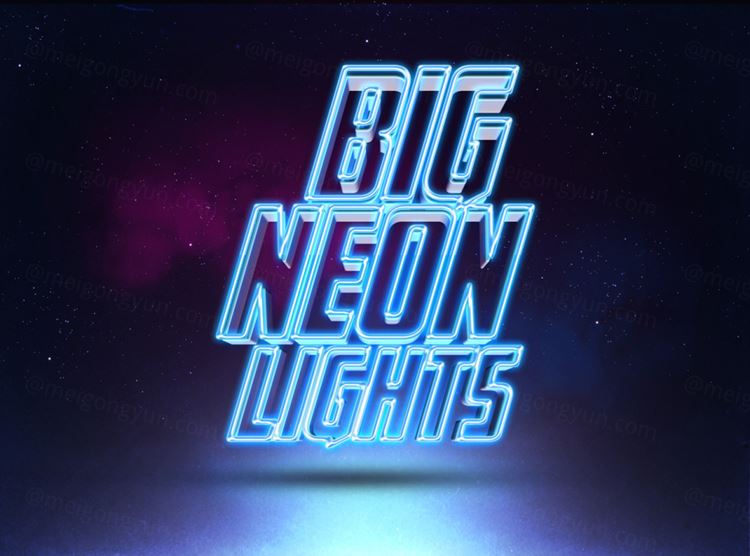图穷联素材库 » 80年代3D蓝色霓虹灯文字特效模板 80\'s Style Text Mockup v3 2 Blue