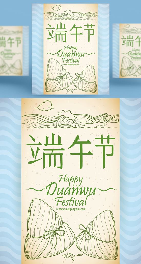 图穷联素材库 » 创意手绘卡通端午节粽子EPS矢量宣传海报模板The Dragon Boat Festival