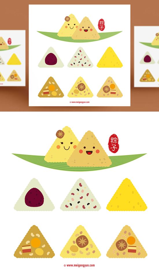 图穷联素材库 » 创意手绘卡通端午节多种口味粽子EPS矢量宣传海报模板The Dragon Boat Festival