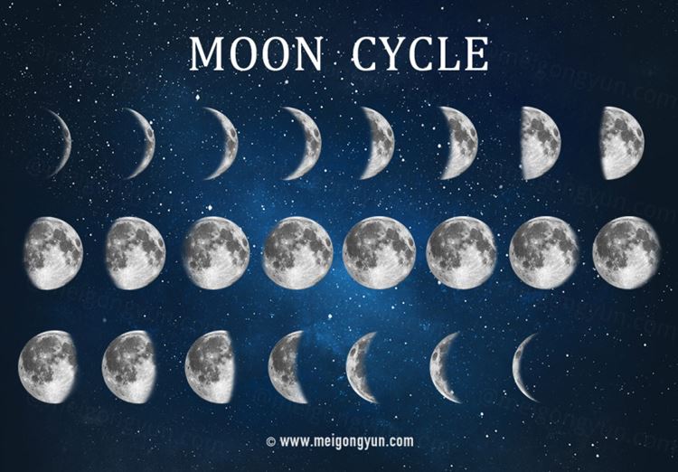 图穷联素材库 » 月亮月球变化满月新月凸月上弦月PNG免抠设计素材