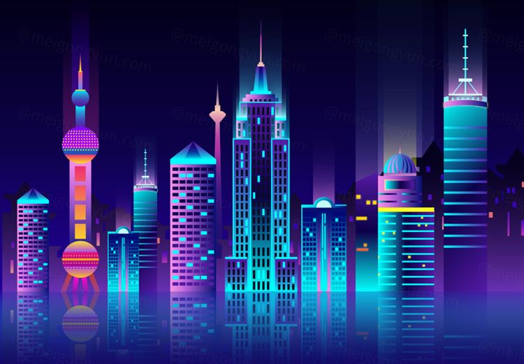 图穷联素材库 » 扁平化流行渐变色城市夜景高楼风景房屋平面海报背景AI矢量设计素材