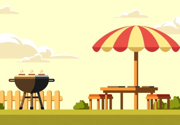 图穷联素材库 » 下午后庭院烧烤烤肉矢量插图Backyard_Barbecue_In_The_Afternoon_Vector