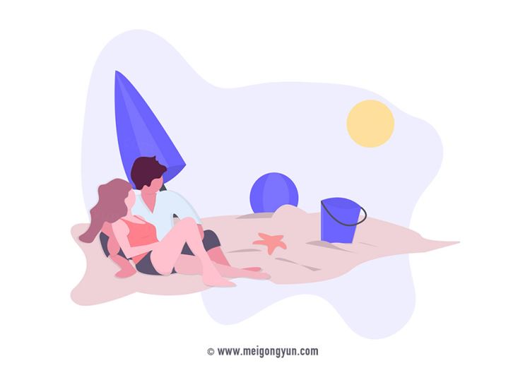 图穷联素材库 » 扁平化风格情侣海边度假场景矢量元素Flattened vector elements