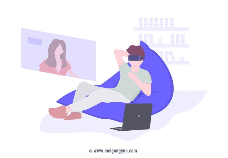 图穷联素材库 » 扁平化风格虚拟聊天室VR场景矢量元素Flattened vector elements