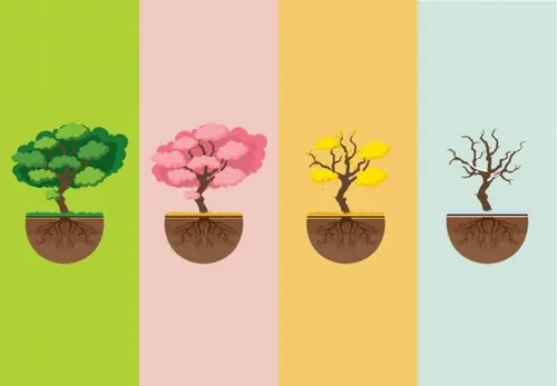图穷联素材库 » 四季不同状态的树根矢量插图Seasons Tree With Roots Free Vector