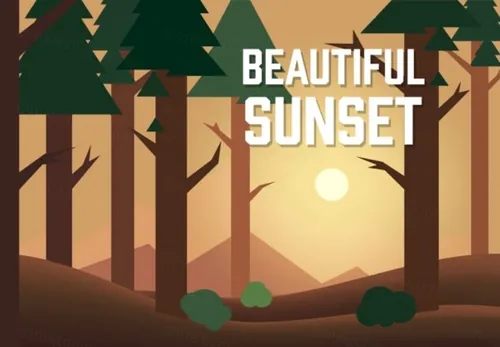 图穷联素材库 » 森林树林日落矢量插图Vector Sunset Illustration