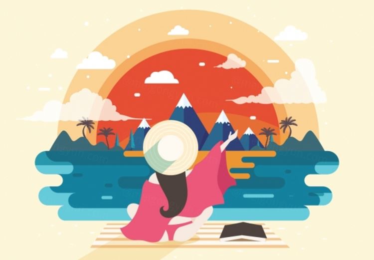 图穷联素材库 » 夏天夕阳观景海滩流浪美女Beach Bum With Sunset View Vector