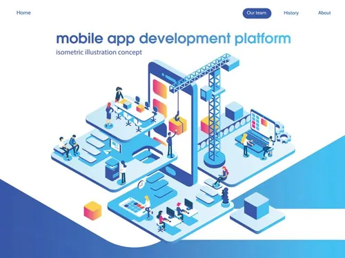 图穷联素材库 » 2.5D等距设计风格项目启动/新品推出/团队协作矢量EPS插图素材 788659411