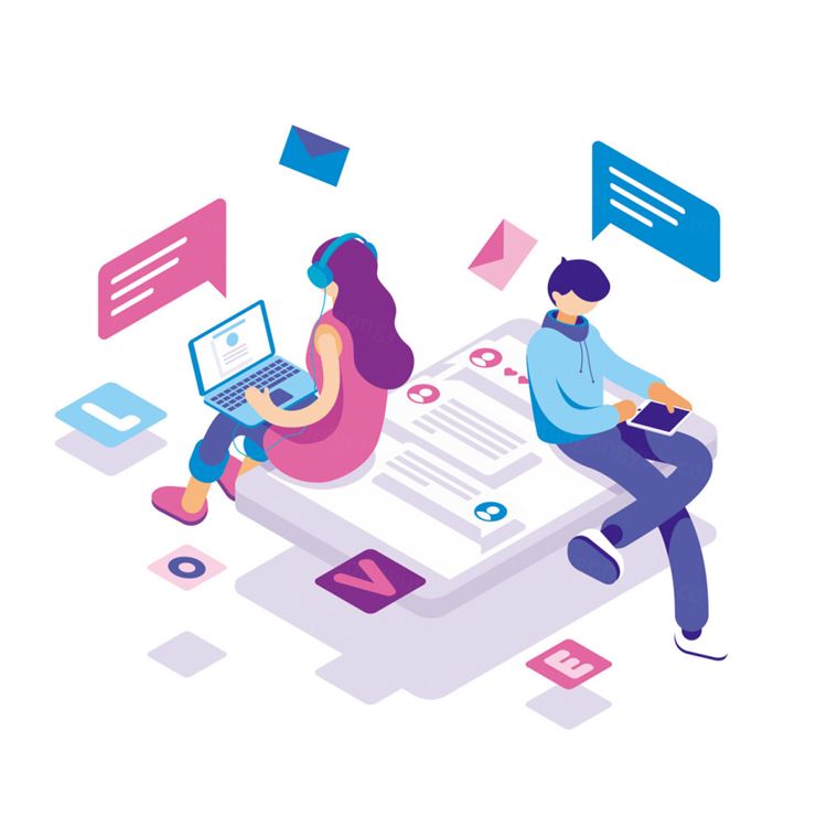 图穷联素材库 » 2.5D等距设计风格青少年社交网络网上约会虚拟关系矢量EPS插图素材