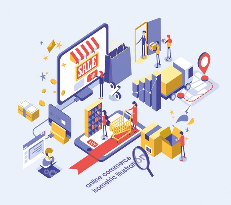 2.5D等距设计风格电商理念/快递送货服务/智能手表屏幕矢量EPS插图素材 763261144