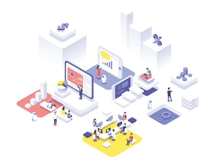 图穷联素材库 » 2.5D等距设计风格项目启动/新品推出/团队协作矢量EPS插图素材 758031970