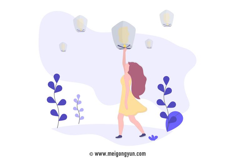 图穷联素材库 » 扁平化风格燃放孔明灯场景矢量元素Flattened vector elements