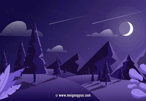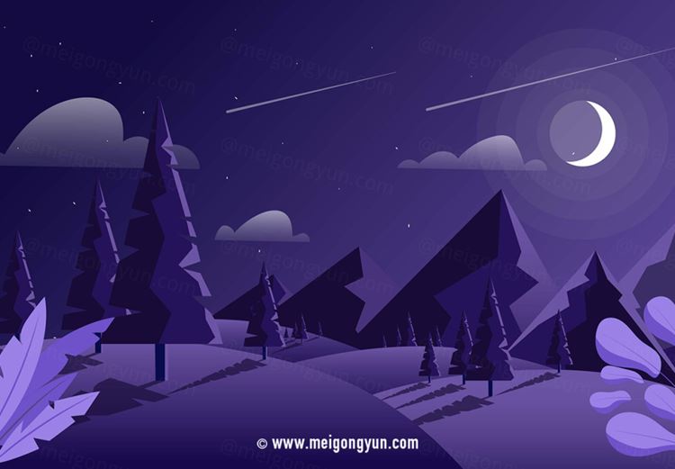 图穷联素材库 » 紫色森林星空夜景矢量插图Vector Landscape Illustration