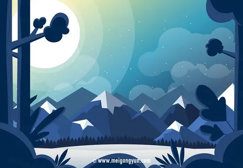 蓝色星空自然景观矢量插图Vector Nature Landscape Illustration