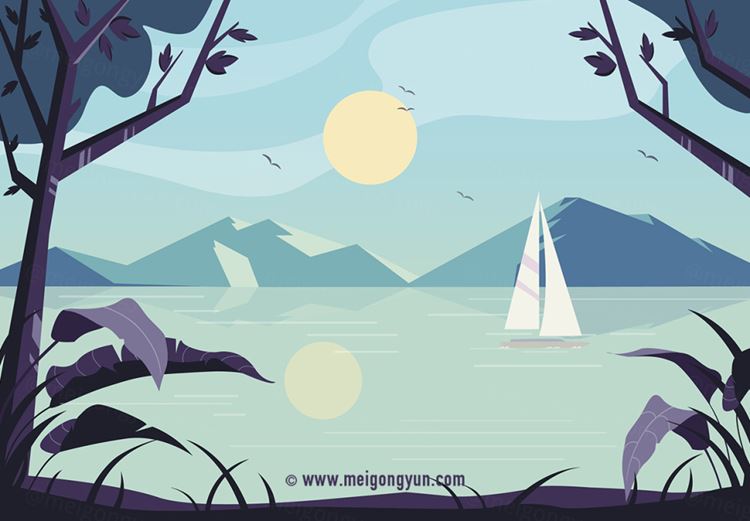 图穷联素材库 » 山水帆船自然风光矢量插图Vector Nature Landscape Illustration