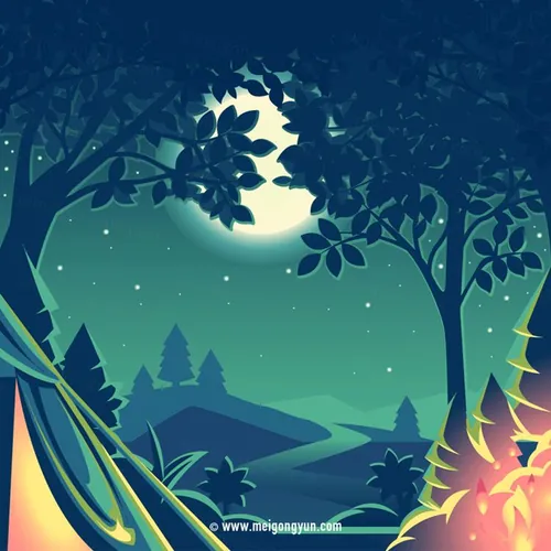图穷联素材库 » 户外露营自然景观矢量插图Night_Camp