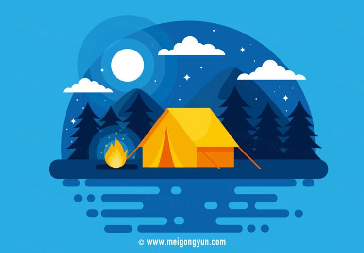 图穷联素材库 » 蓝色户外露营自然景观矢量插图Night_Camp_Vector