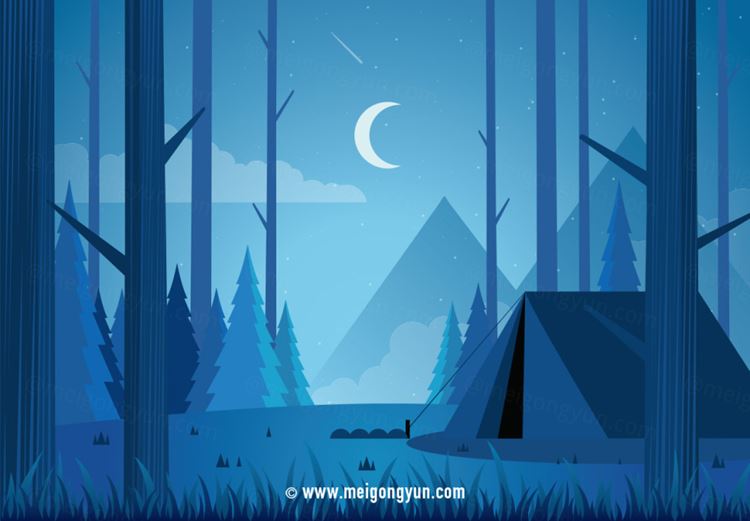 图穷联素材库 » 蓝色自然夜晚景观矢量背景Blue Forrest Landscape Background