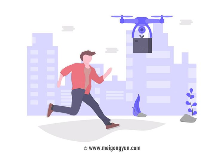 扁平化风格无人机投递场景矢量元素Flattened vector elements