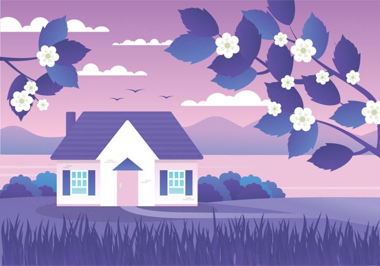 图穷联素材库 » 紫色日落矢量景观背景插图Purple Sunset Landscape Background
